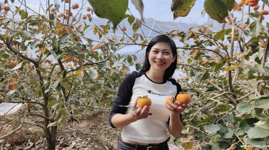 钟丽侠说:“大家好,这里是三百山甜柿采摘园,我是丽侠,我是去年通过东江电商平台学习短视频制作、剪映和直播带货这块的,记得去年是由政府组织我们去免费学习,我在学习拍照技巧,短视频制作对我得到了很大的提升,想做线上直播,想做短视频制作的小伙伴们可以去学习哦。我们的柿子是摘下来就可以吃的,直接带皮吃,纯天然健康甜柿,我们在三百山罗屋等你过来哦!”