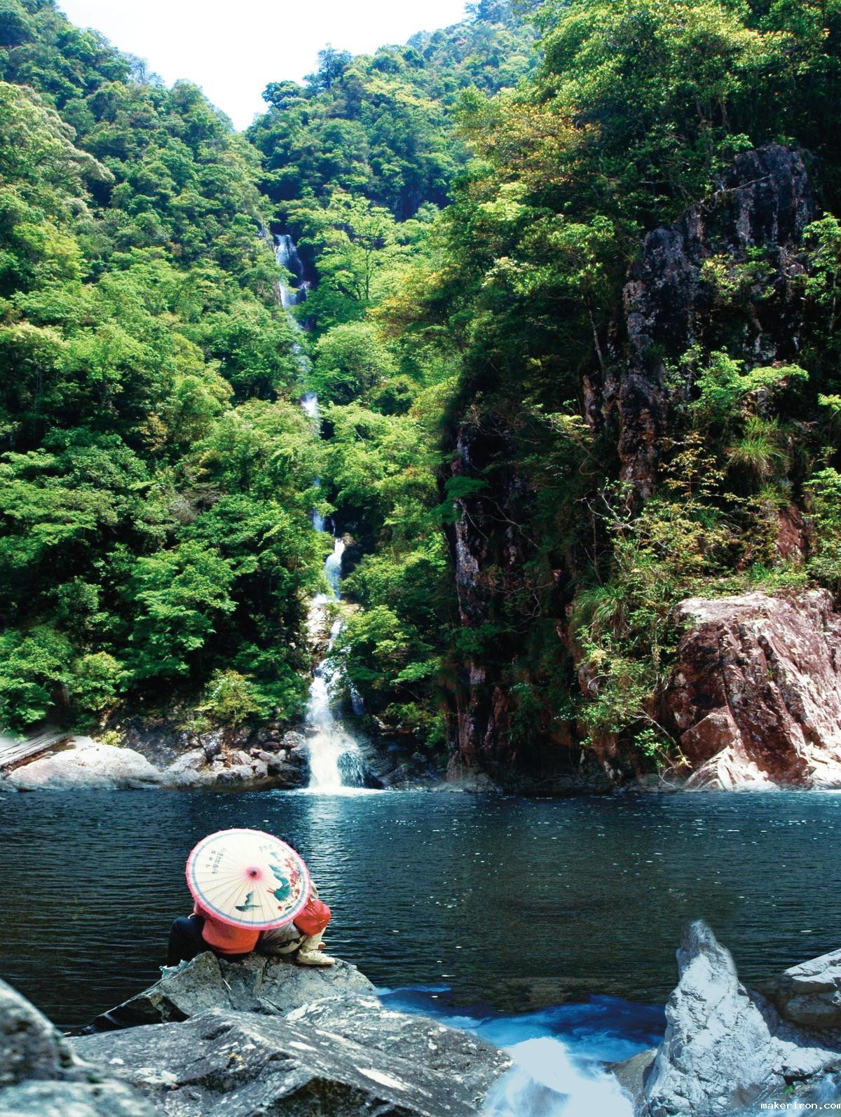 三叠瑶池 深山峡谷中连续三个瀑布各具特色,三个瀑布下各有一近似圆形的深潭,潭的四周宽阔,潭边石床平坦整洁,错落有致。两岸悬崖如壁,悬崖上青山插云,古木参天。置身其间,顿有隔绝尘寰,宛若仙境之感。