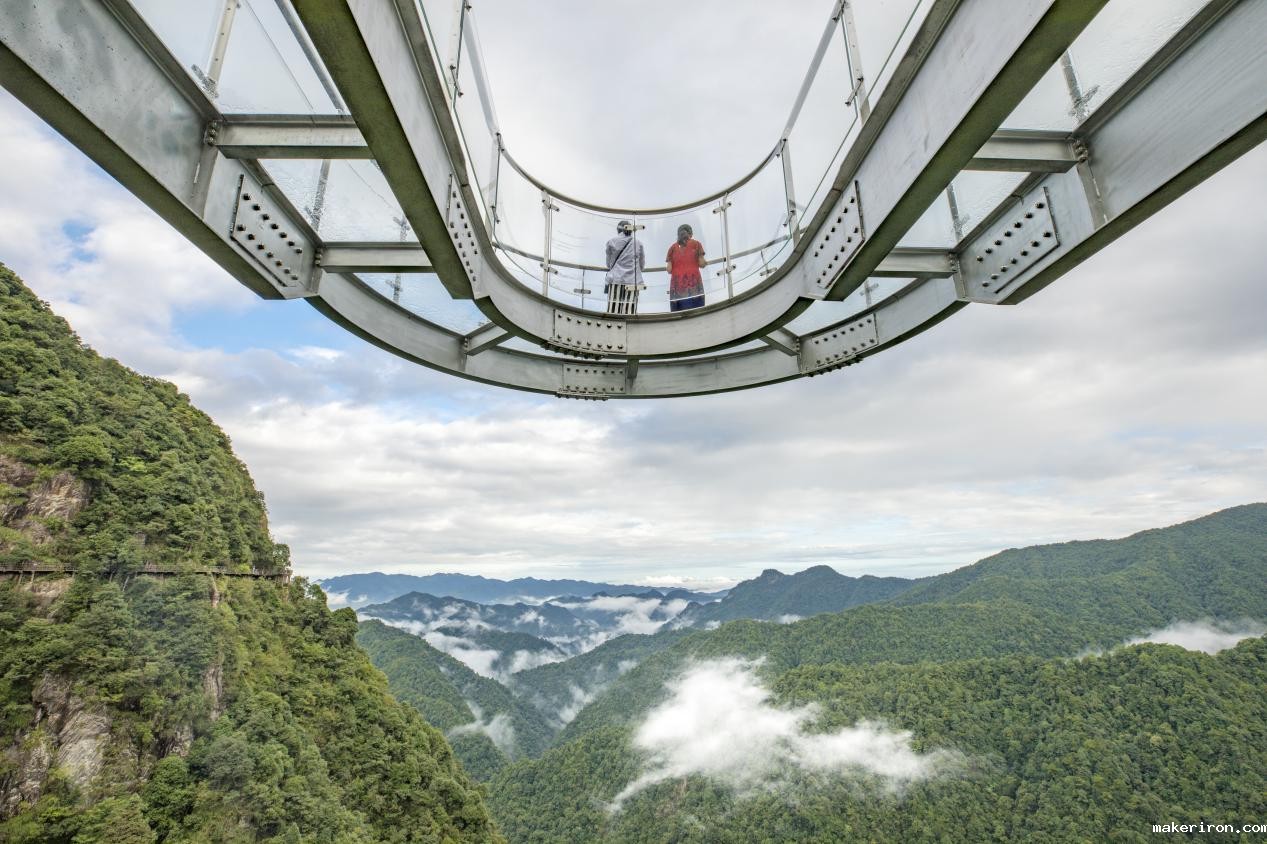 玻璃栈道 全长80米,不仅有透明玻璃的刺激,还有3D碎屏特效3D的惊险体验,让人在对脚下的透明战战兢兢之余,更乐享于踏云而行的快感。