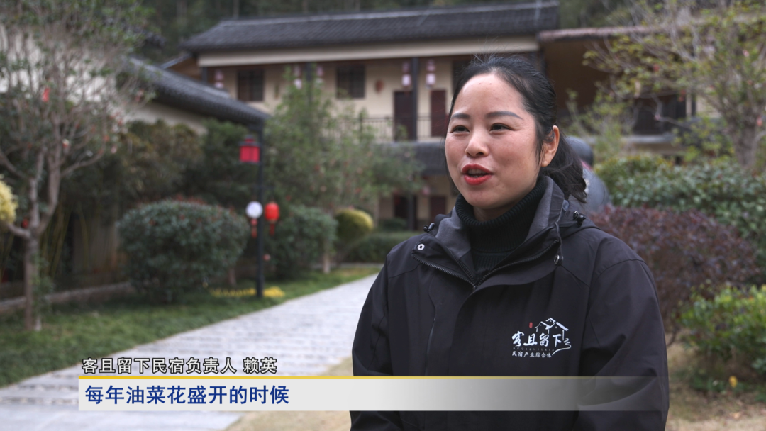 采访客且留下民宿负责人赖英:每年油菜花盛开的时候,来这边游玩的客人特别多。尤其是今年,我们的房间很早就预订完了。我们也会给客人提供我们自己种的农家菜,帮客人介绍周边游玩的路线,客人对我们的服务非常满意。
