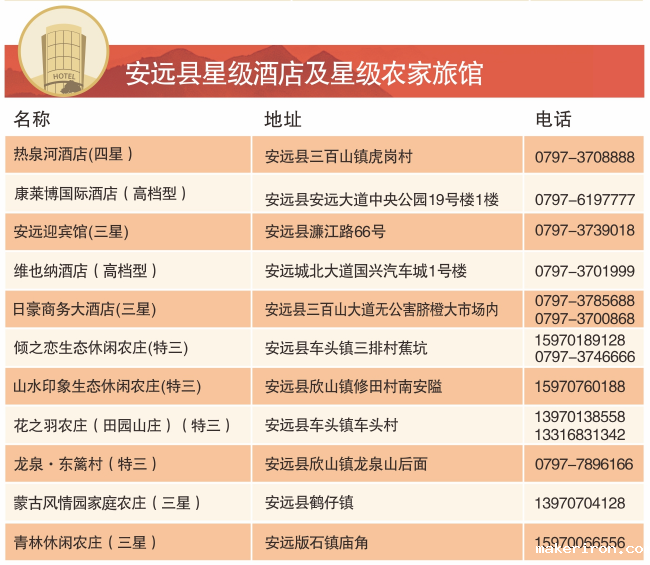安远县星级酒店及星级农家旅馆