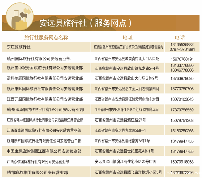 安远县旅行社(服务网点)
