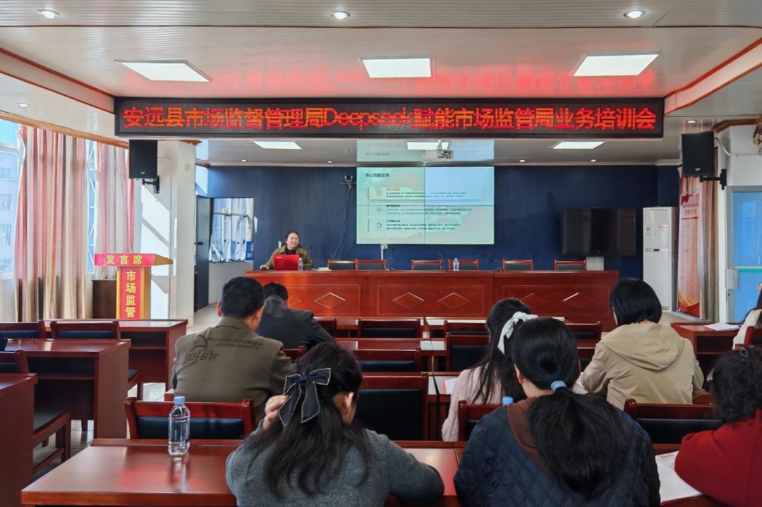 为更好地适应新形势下市场监管工作发展,提升干部AI技术应用能力,助推市场监管高质量发展,近日,安远县市场监督管理局组织召开DeepSeek赋能市场监管业务培训会。