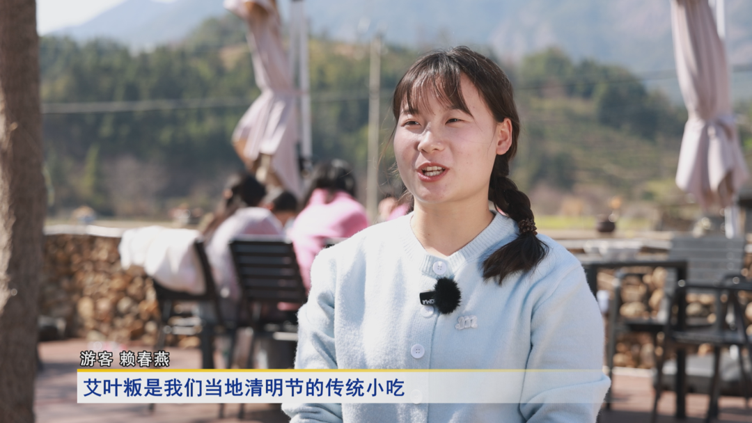 采访游客赖春燕∶艾叶粄是我们当地清明节的传统小吃,我们客家人在清明节制作和食用艾叶粄既是对祖先的一种祭拜方式,也是对美好生活的祝愿,更是体现了我们客家人对传统文化的传承。